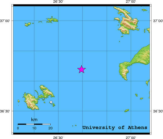 Ασθενής δόνηση στη θαλάσσια περιοχή μεταξύ της Κω και της Αστυπάλαιας, έγινε σήμερα το πρωί στις 05:22 ώρα Ελλάδος. Ο σεισμός είχε εστιακό βάθος 10 km Λεπτομέρειες: |